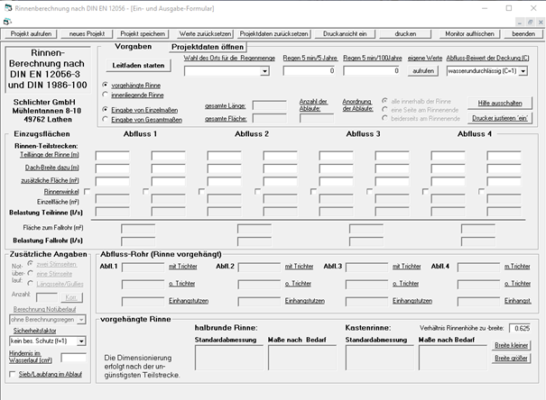Unter folgendem Link steht unser aktuelles Rinnenberechnungsprogramm zur Verfügung: