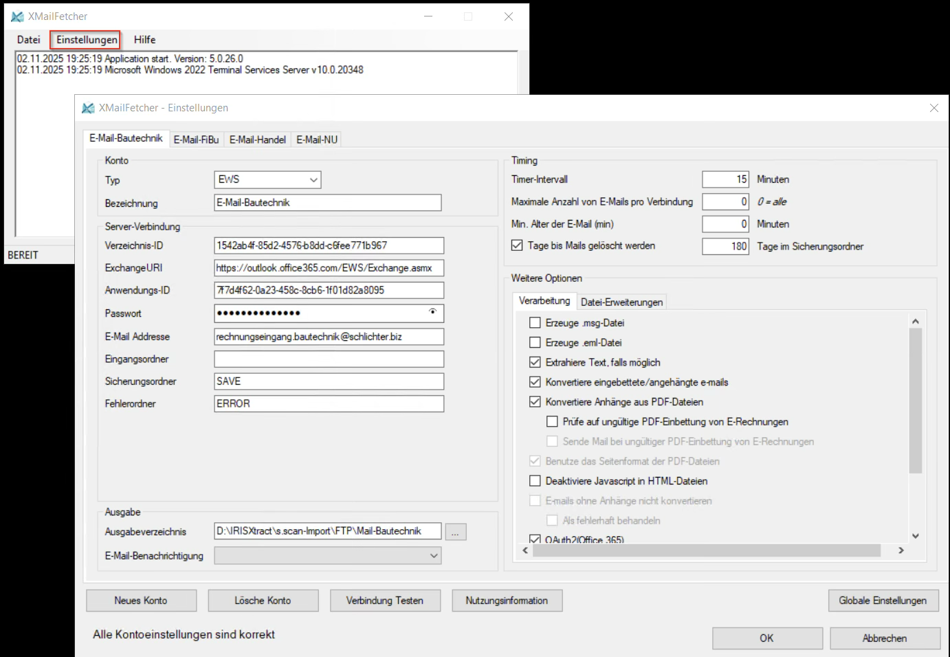 Die Konfiguration der abzurufenden Postfächer kann auf dem DMS-Server sdok-app kontrolliert/konfiguriert werden.