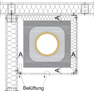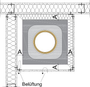 a. Abstand A > 50 mm, Hohlraum belüftet