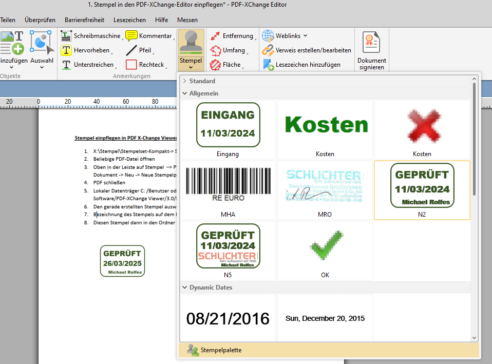 Um einen Stempel in den PDF X-Change Viewer einzupflegen, beginnst du damit, den gewünschten Stempel aus dem Ordner
