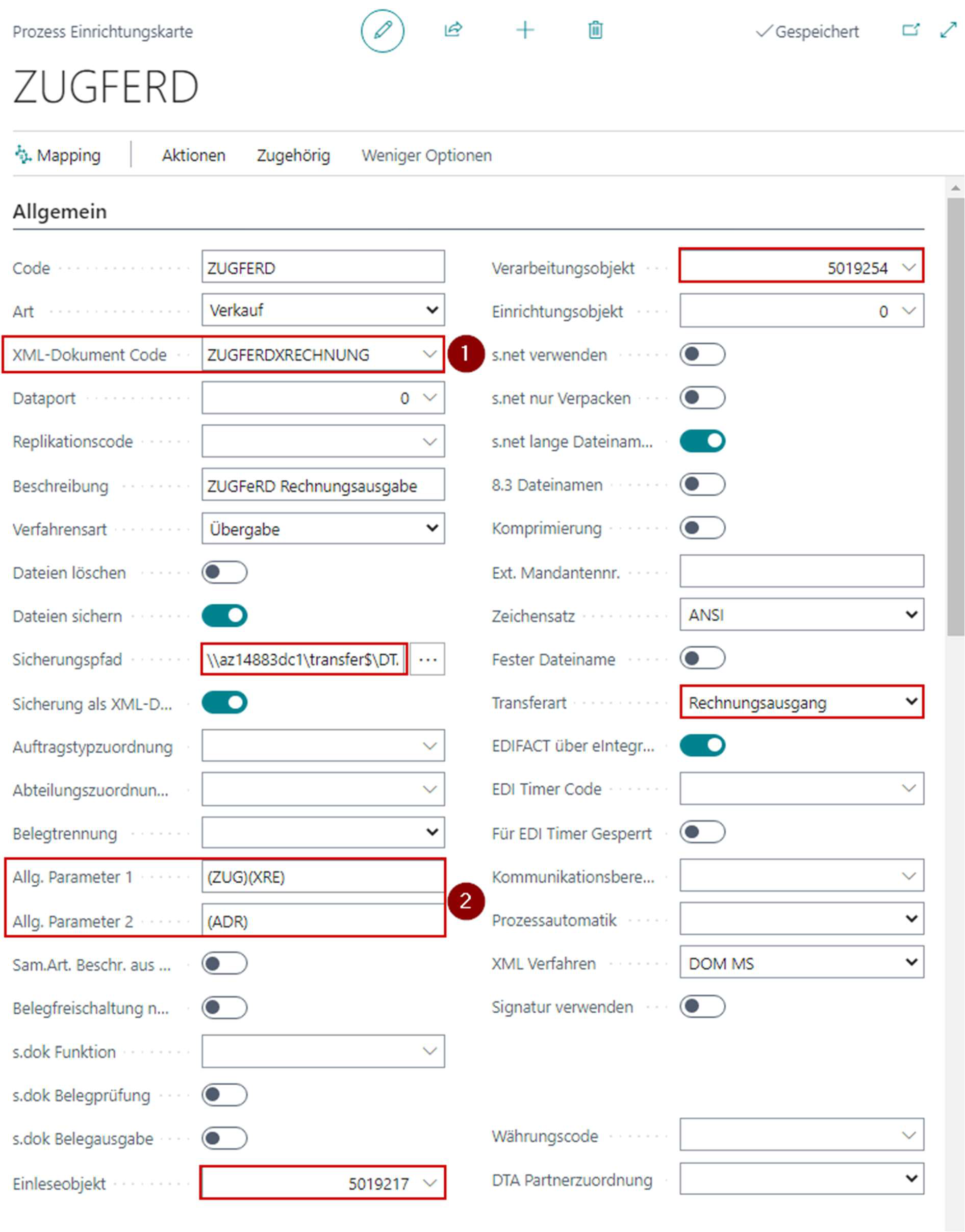Über den DÜ-Prozess werden die grundlegenden ZUGFeRD Einrichtungen sowie die Zuordnung zum